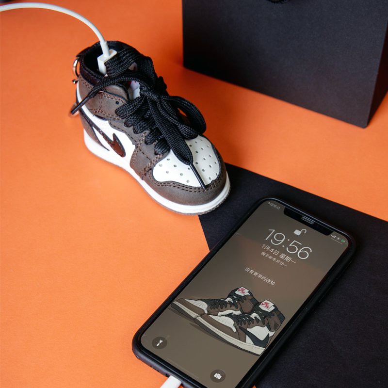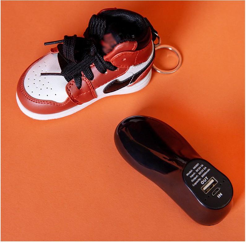 Móc khóa sạc dự phòng sneaker Nike Air Jordan full box.Có 2 màu đỏ và cam kèm hộp