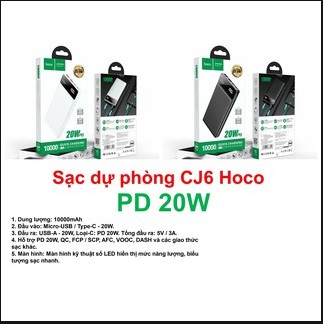 Giới thiệu Sạc dự phòng HOCO CJ6, Pin dự phòng 10000mAh chính hãng sạc nhanh PD 20W QC 3.0 màn hình kỹ thuật số điện tử - BAOVY