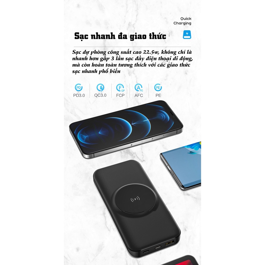 Điện Thoại & Phụ Kiện > Phụ kiện > Sạc dự phòng & Pin > Sạc dự phòng || Sạc dự phòng PISEN PRO Wireless 10000mAh , 22.5W (KC-DY04) - MagSafe ,Black - Hàng chính hãngCòn hàng