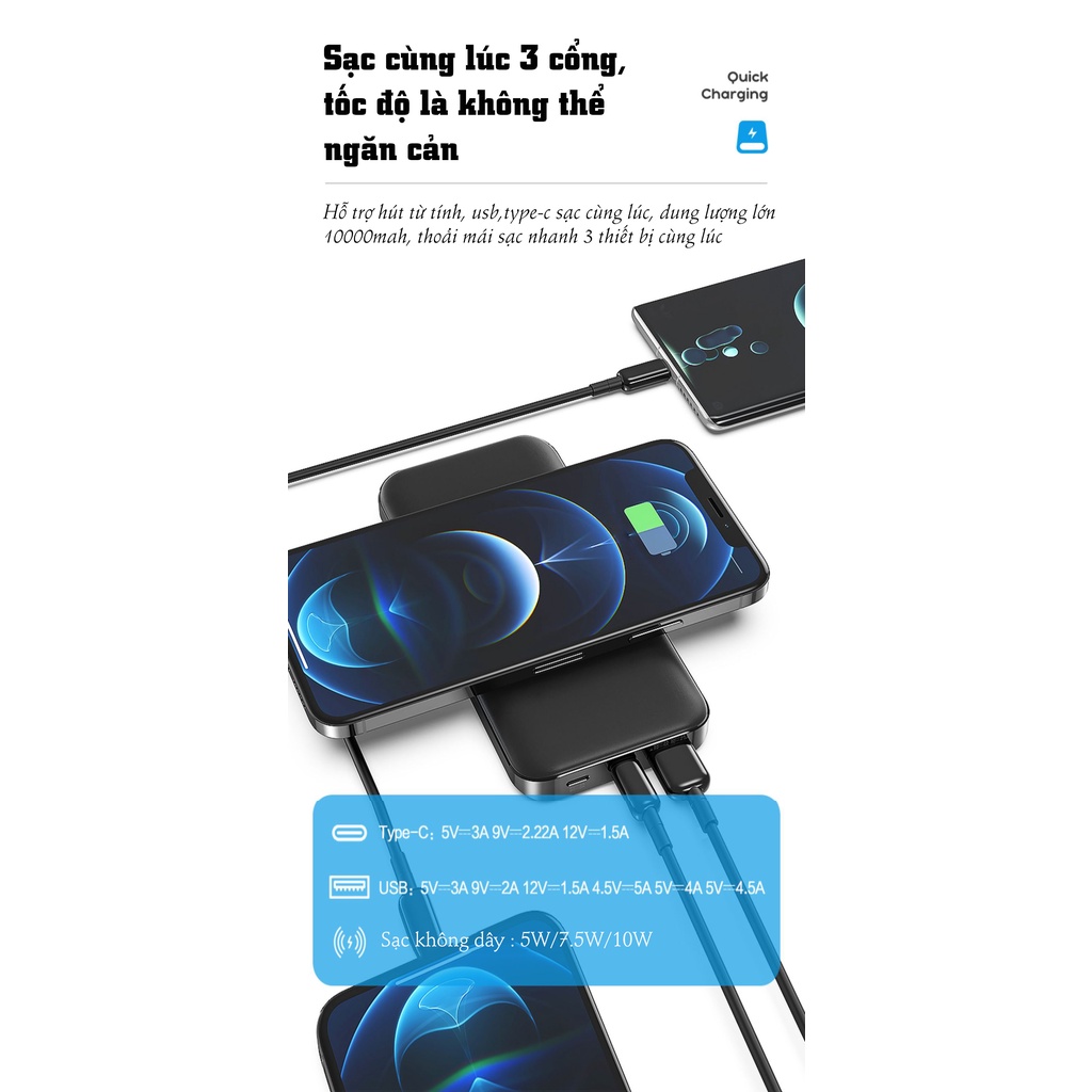 Giới thiệu Sạc dự phòng PISEN PRO Wireless 10000mAh , 22.5W (KC-DY04) - MagSafe ,Black - Hàng chính hãng