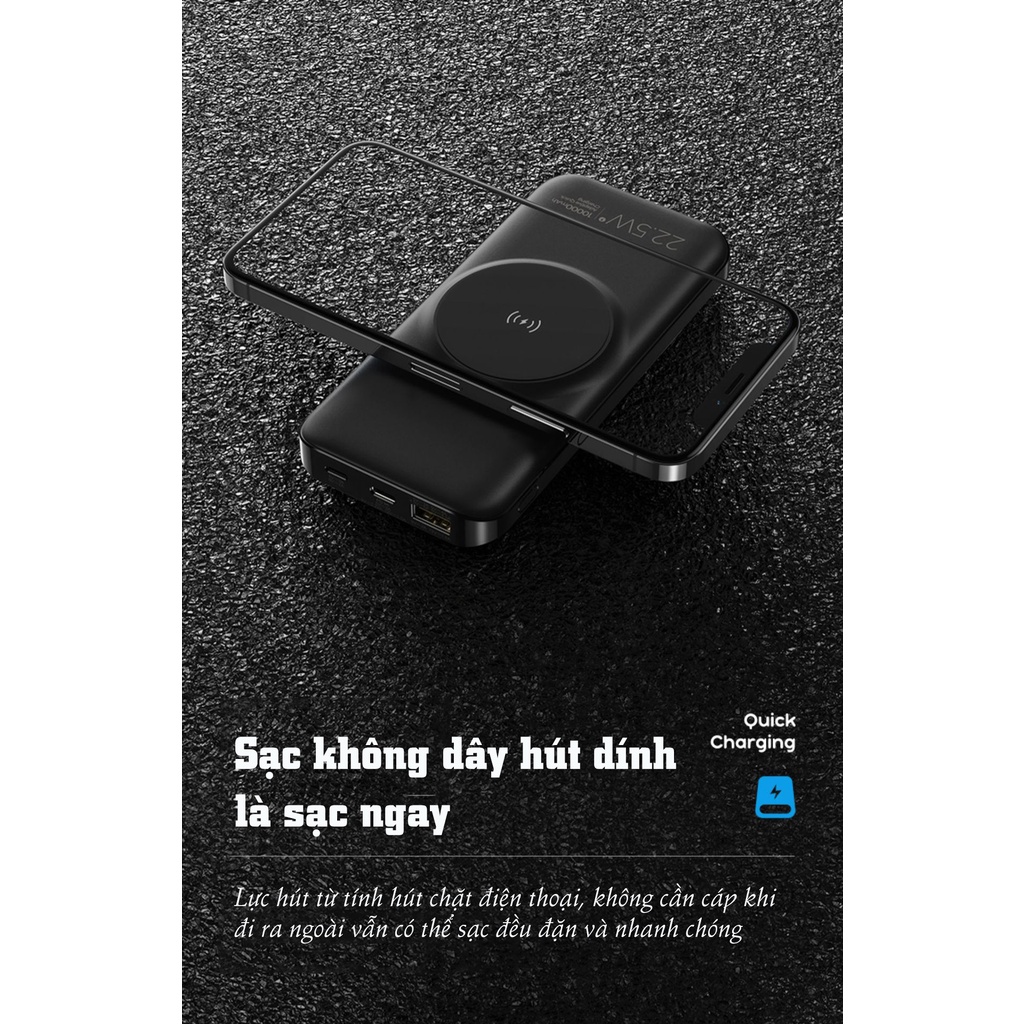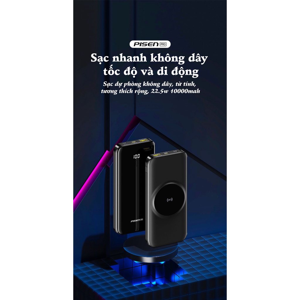 Sạc dự phòng PISEN PRO Wireless 10000mAh , 22.5W (KC-DY04) - MagSafe ,Black - Hàng chính hãng