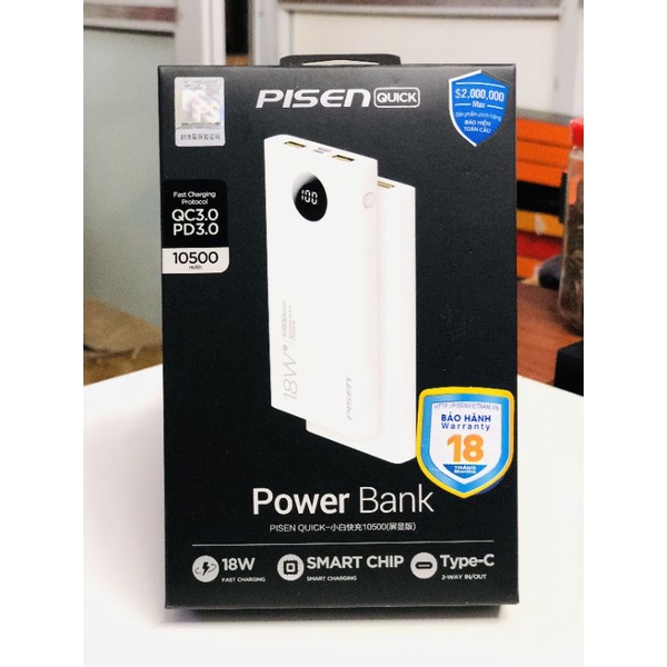 Sạc Dự Phòng Pisen Sạc Nhanh 18w 10500mah, Bảo Hành 12 Tháng