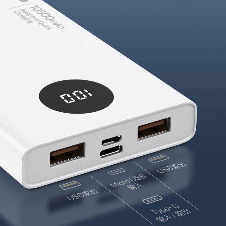 Tích hợp 2 cổng sạc vào pin: MicroUSB - TypeC (typeC có hỗ trợ sạc ra) vô cùng tiền lợi