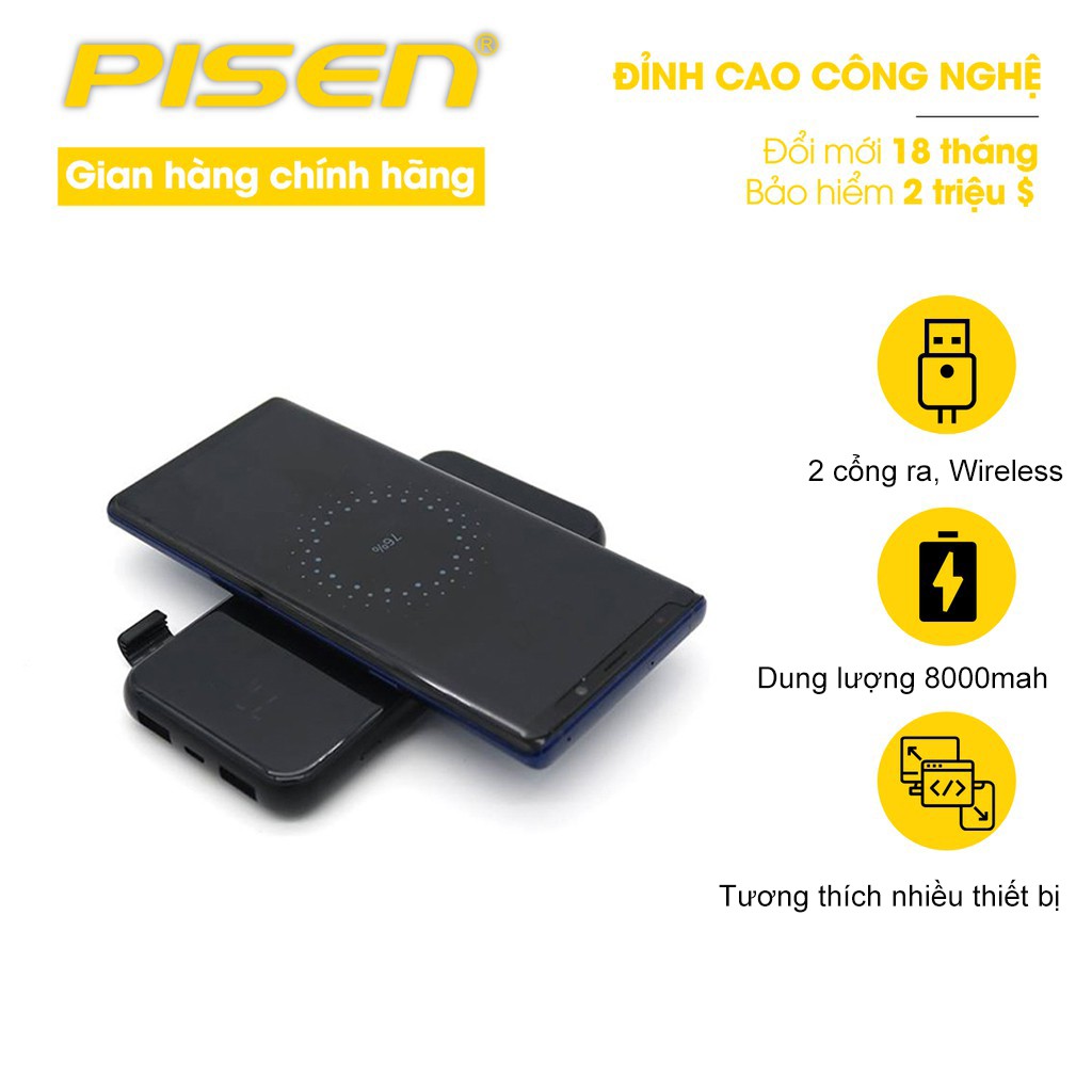 Điện Thoại & Phụ Kiện > Phụ kiện > Sạc dự phòng & Pin > Sạc dự phòng || Sạc dự phòng Pisen Wireless 8000mAh (Dual Mode, Dual USB 2A Smart, LED) - Hàng Chính hãngCòn hàng