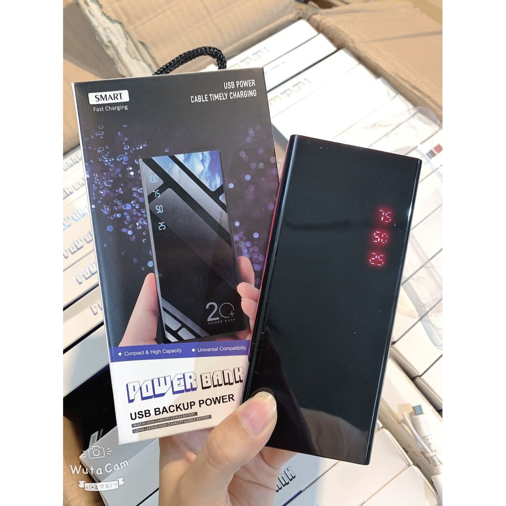 Sạc Dự Phòng POWER BANK 20000+Tích Hợp Đèn Pin Màn Hình Hiển Thị % Pin - Tặng 1 Cap Sạc Điện Thoại