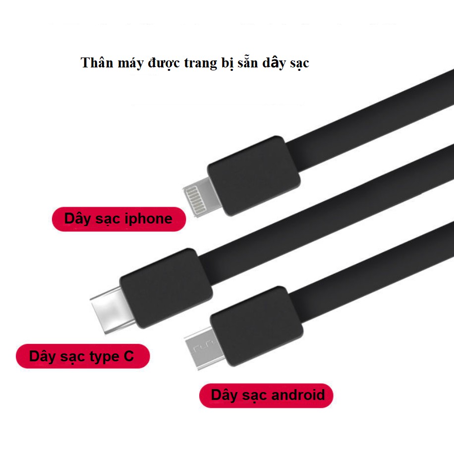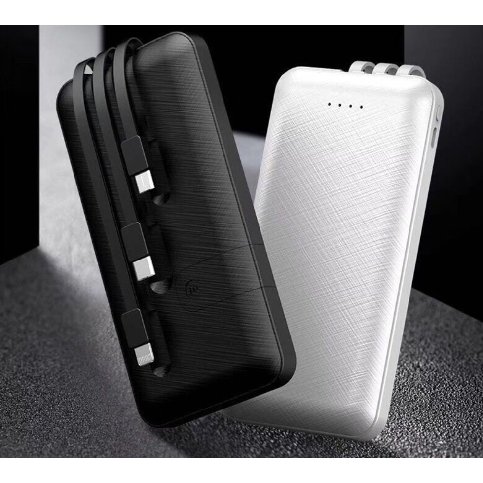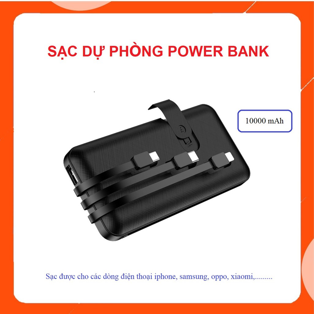 Sạc dự phòng Power Bank 10000mAh chính hãng tích hợp 3 dây sạc đa năng thông minh cho iphone, samsung, oppo, huawei