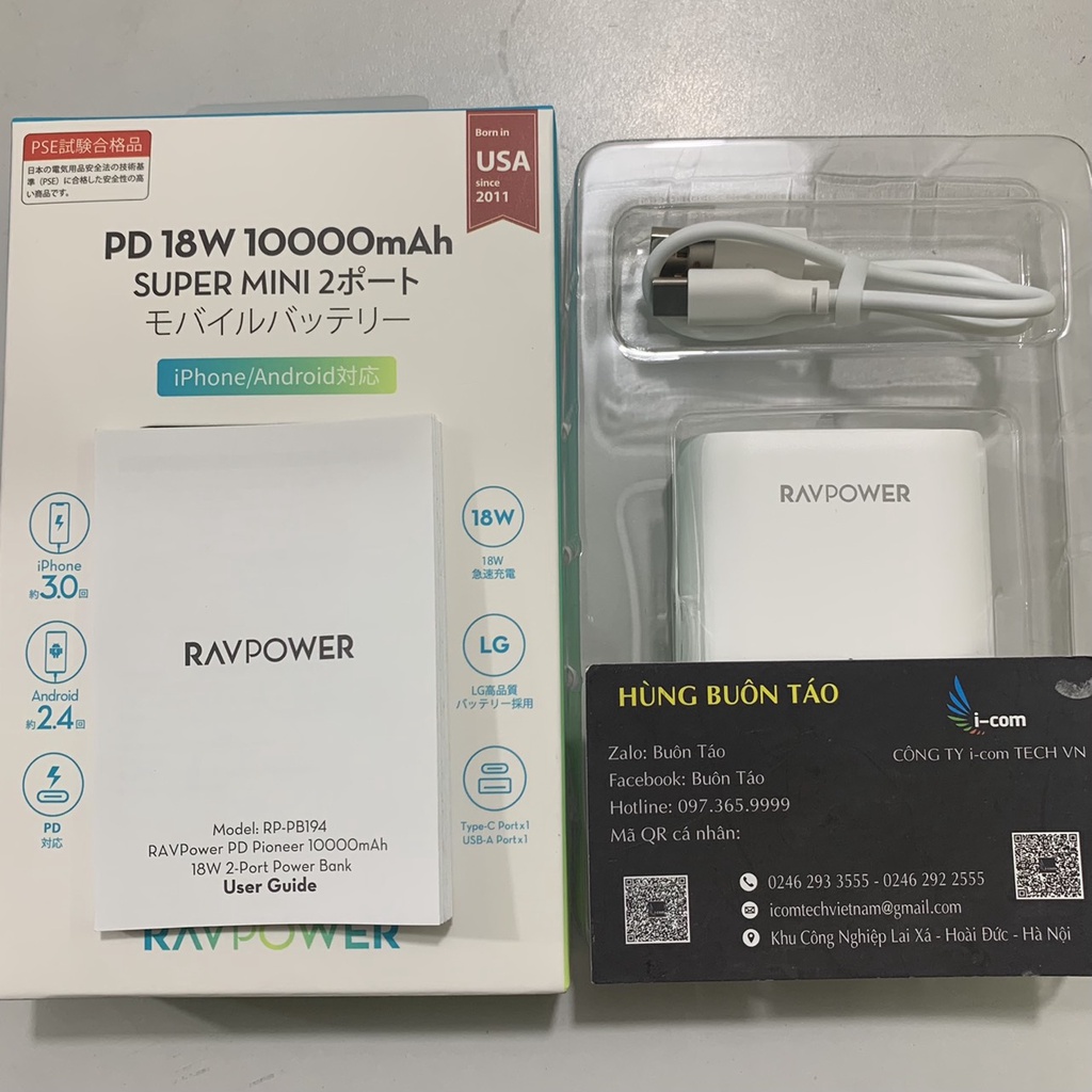 Điện Thoại & Phụ Kiện > Phụ kiện > Sạc dự phòng & Pin > Sạc dự phòng || Sạc Dự Phòng RavPower 10.000 18w (RP-PB194)Còn hàng