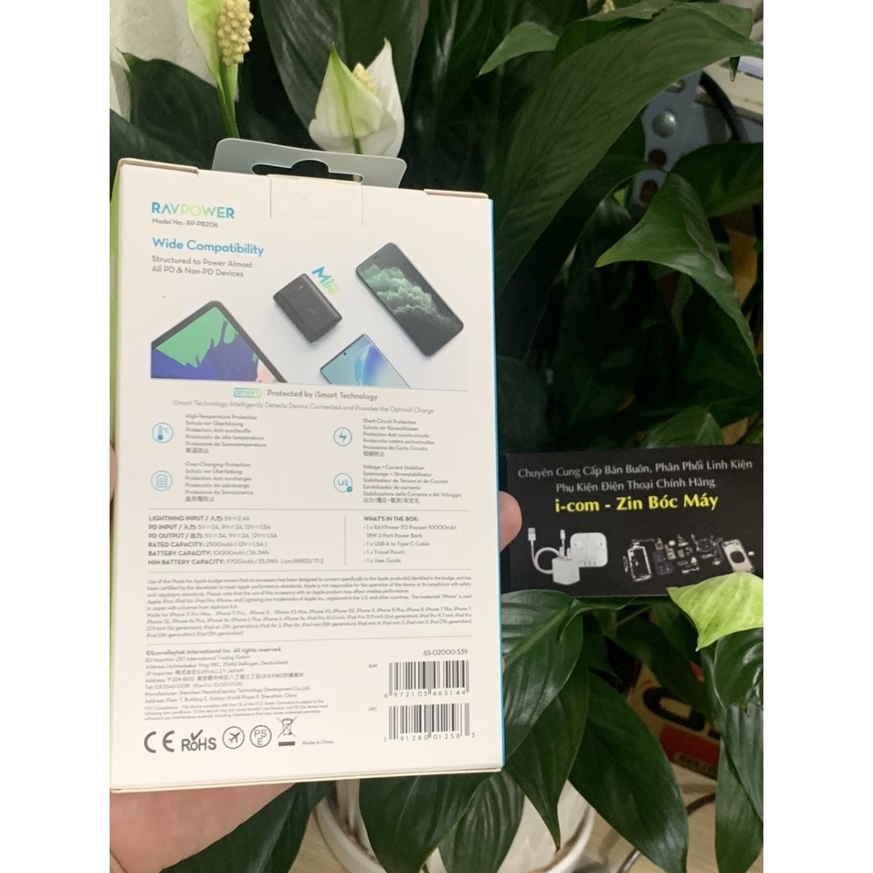 Sạc Dự Phòng RavPower (Công Lightning - TypeC) 10.000 có cổng Lightning ( RP - PB206 ) Kèm Túi Đựng
