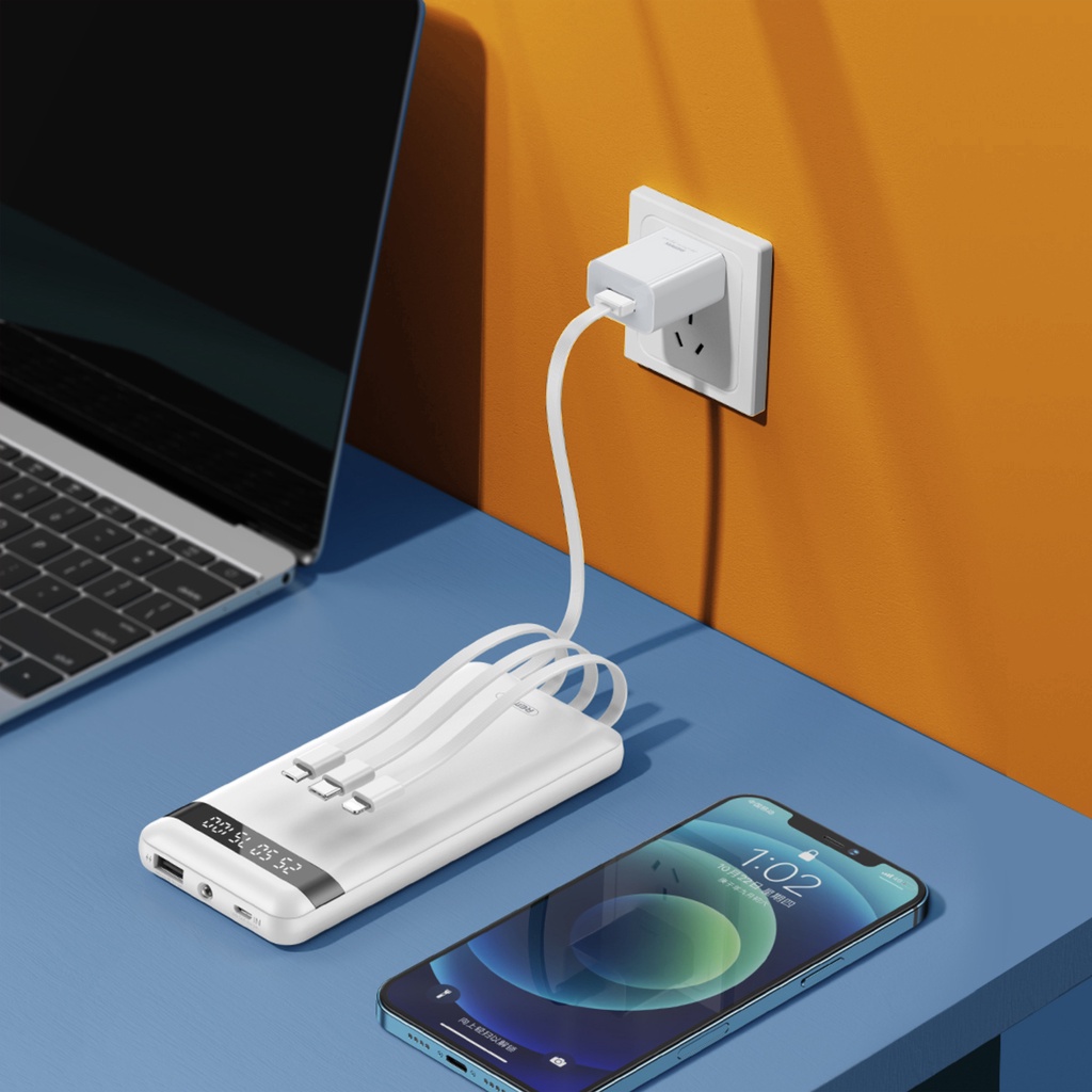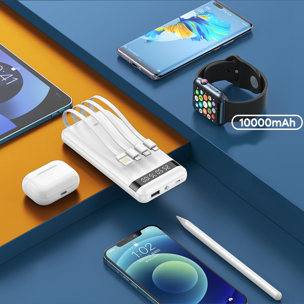 Điện Thoại & Phụ Kiện > Phụ kiện > Sạc dự phòng & Pin > Sạc dự phòng || Sạc dự phòng Remax 10.000 mAh (tích hợp 4 cable + đèn led)Còn hàng