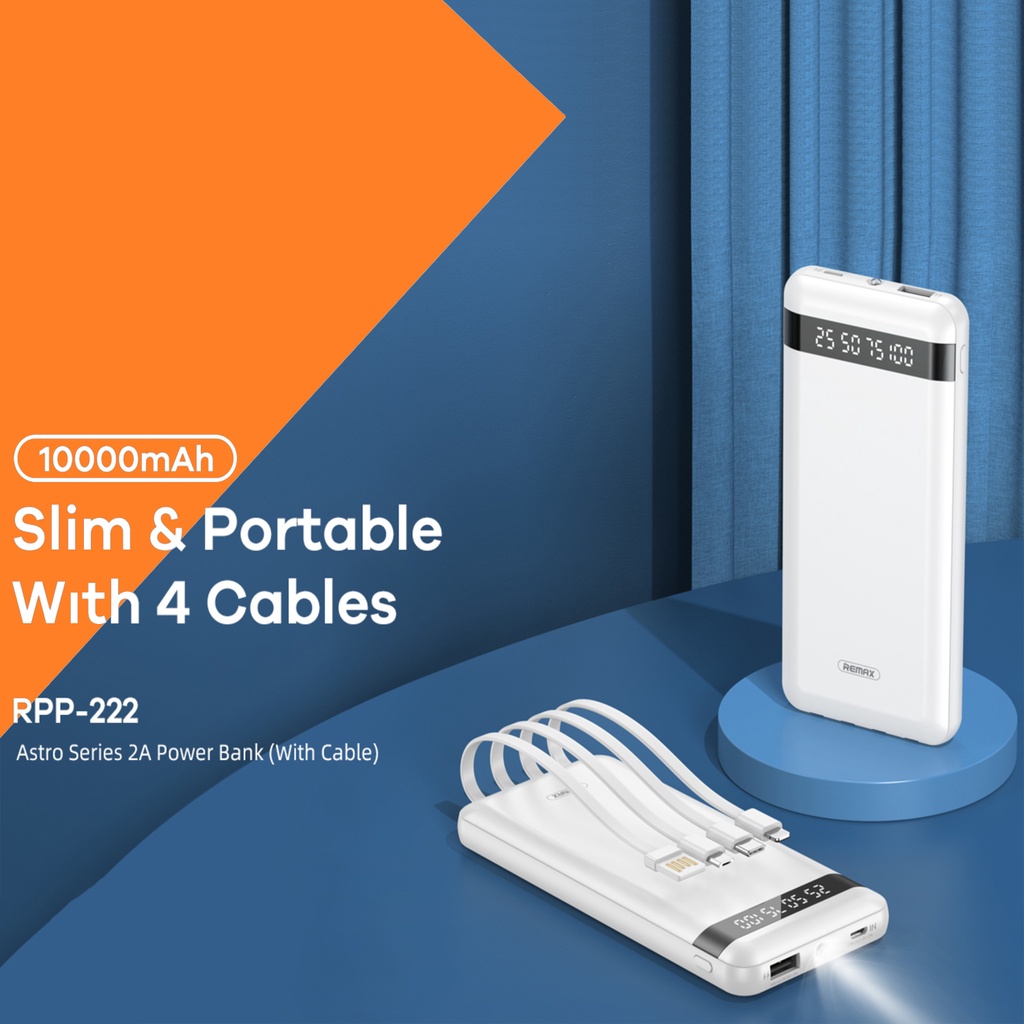 Sạc dự phòng Remax 10.000 mAh (tích hợp 4 cable + đèn led)