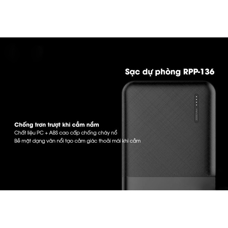 Là mẫu pin sở hữu dung lượng khủng nhất trong dòng pin sạc dự phòng Remax, Remax RPP-136 20.000mAh được tạo ra nhằm phục vụ nhu cầu sử dụng điện thoại liên tục của những người thường xuyên phải đi xa.