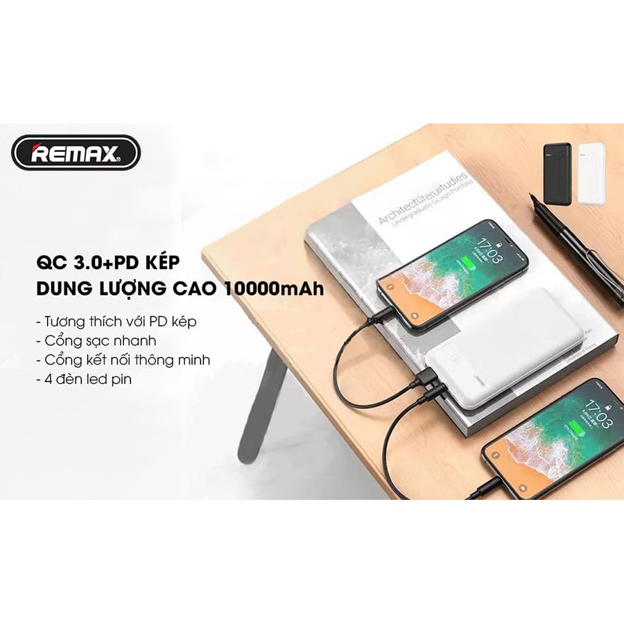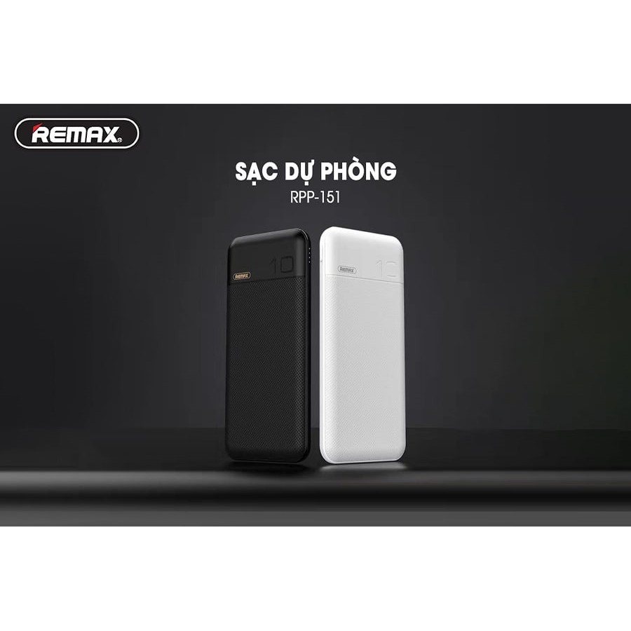 Sạc Dự Phòng Remax RPP-151 10000Mah (Sạc Nhanh QC3.0, PD 18W) 2 Cổng Sạc Vào, 1 Cổng Sạc Ra, Màn Hình Led - Hưng Long PC