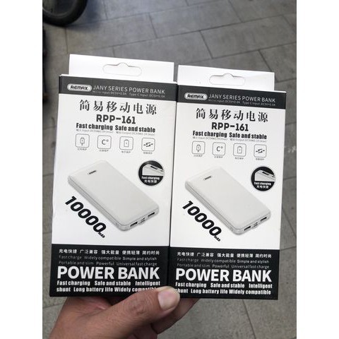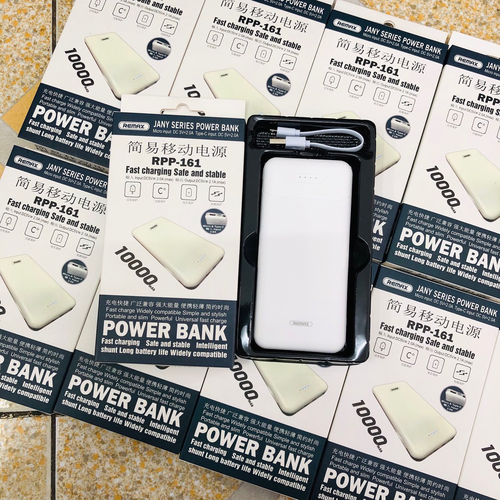 Pin sạc dự phòng REMAX RPP-161 với thiết kế đơn giản với hiệu suất vượt trội. Cùng với dung lượng 10.000mAh giúp bạn sạc được thiết bị lâu hơn nhiều hơn - bạn có thể sử dụng thoải mái và di chuyển dễ dàng.