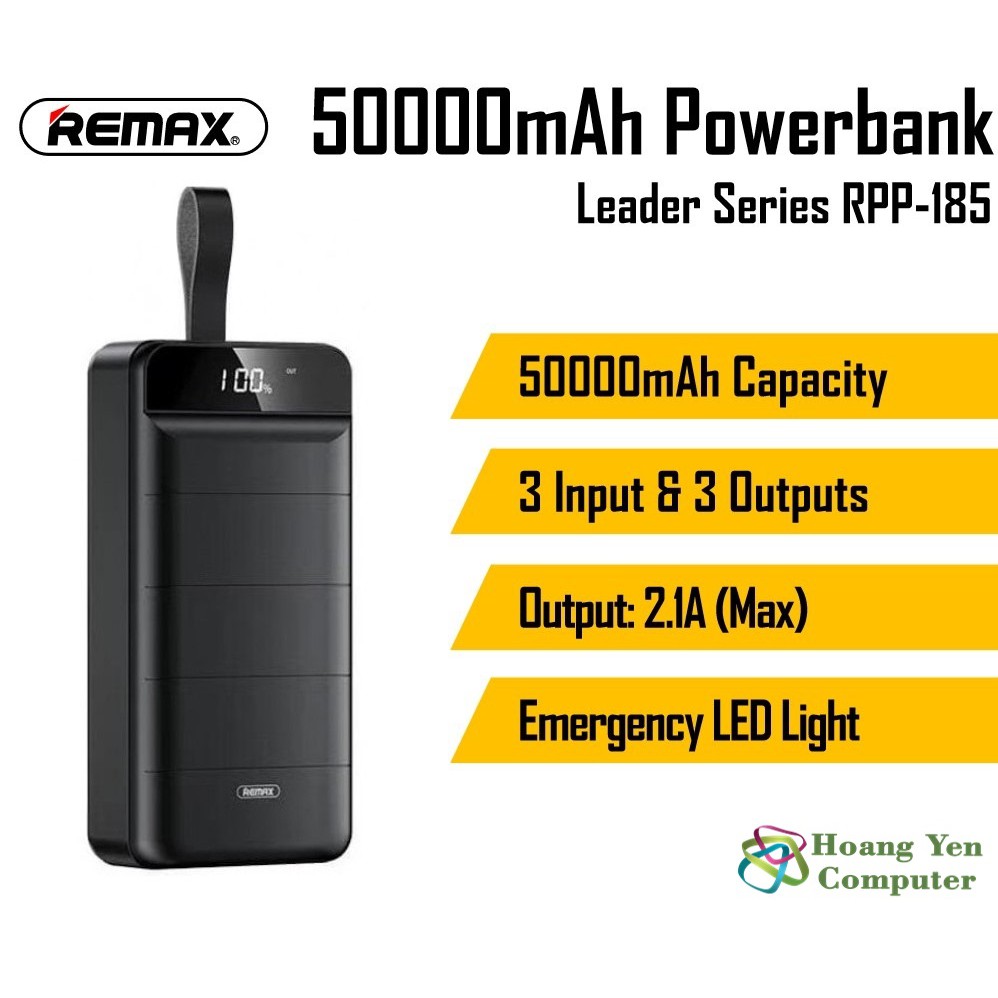 Giới thiệu Sạc Dự Phòng Remax RPP-185 50000mAh Lõi Polymer 3 Cổng Sạc Vào, 3 Cổng Sạc Ra - Hoàng Yến Computer