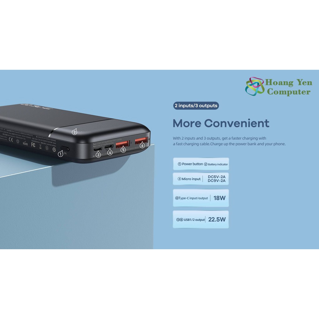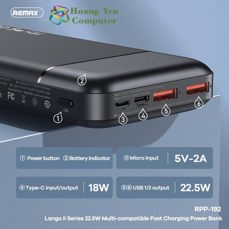 Giới thiệu Sạc Dự Phòng Remax RPP-192 20000Mah (Sạc Nhanh QC3.0 18W, 22.5W, PD 18W, VOOC 2.0) - BH 1 Năm - Hoàng Yến Computer