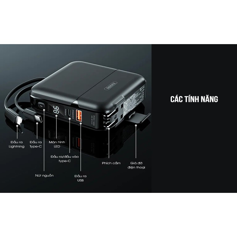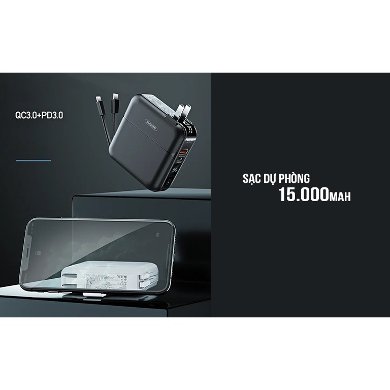 Giới thiệu Sạc Dự Phòng Remax RPP-20 - Hỗ Trợ Sạc Nhanh QC3.0 + PD18W - Tích Hợp 2 Cáp Sạc TypeC & Lightning - Dung Lượng 15000mA