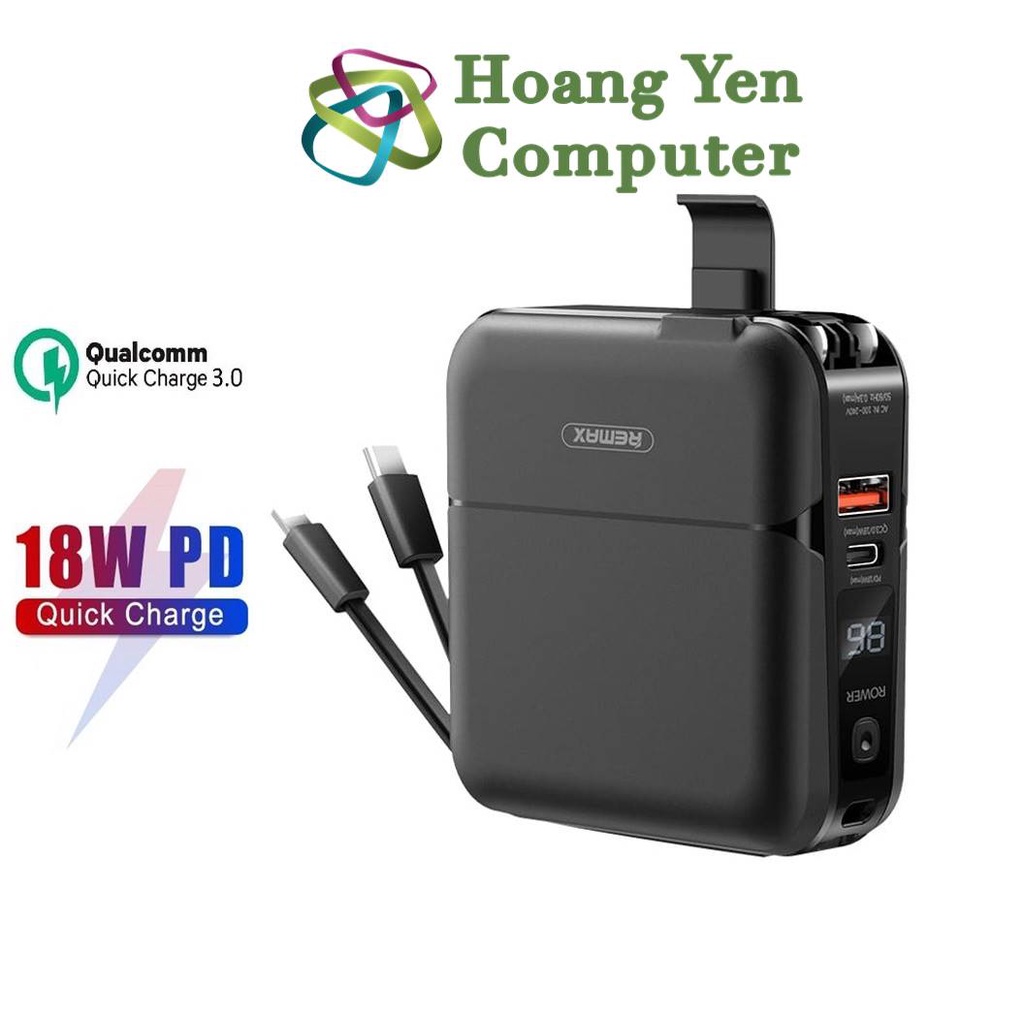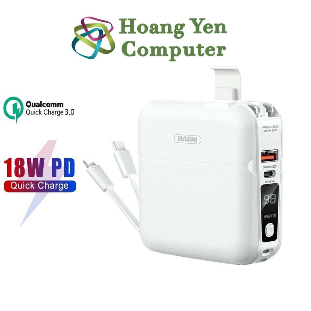 Giới thiệu Sạc Dự Phòng Remax RPP-20 15000Mah (Sạc Nhanh QC3.0, PD 18W), Tích Hợp Cáp Sạc, Nguồn AC Sạc Trực Tiếp - BH 1 Năm