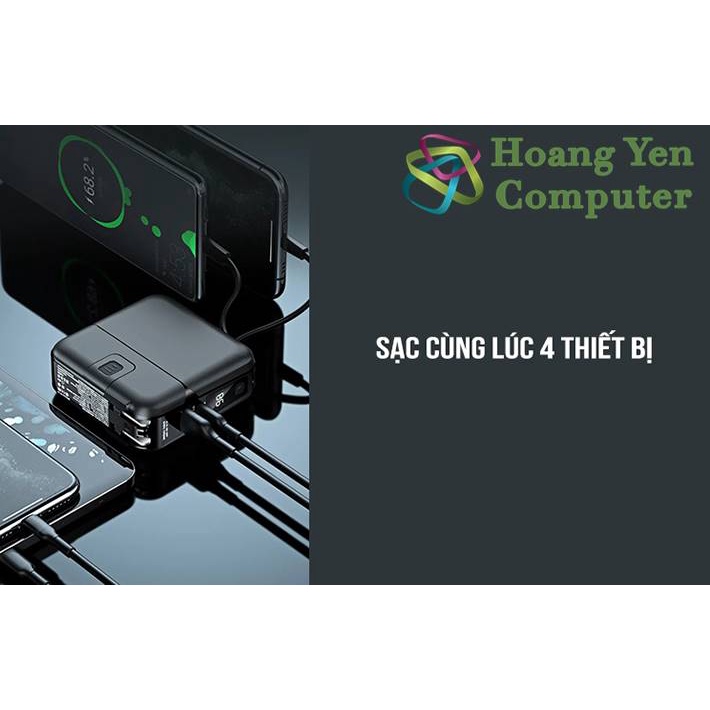 ✅ Trang bị 4 cổng sạc ra: 1 cổng USB, 1 cổng sạc ra TYPE C 18W, 2 cáp sạc tích hợp Type C và Lightning.