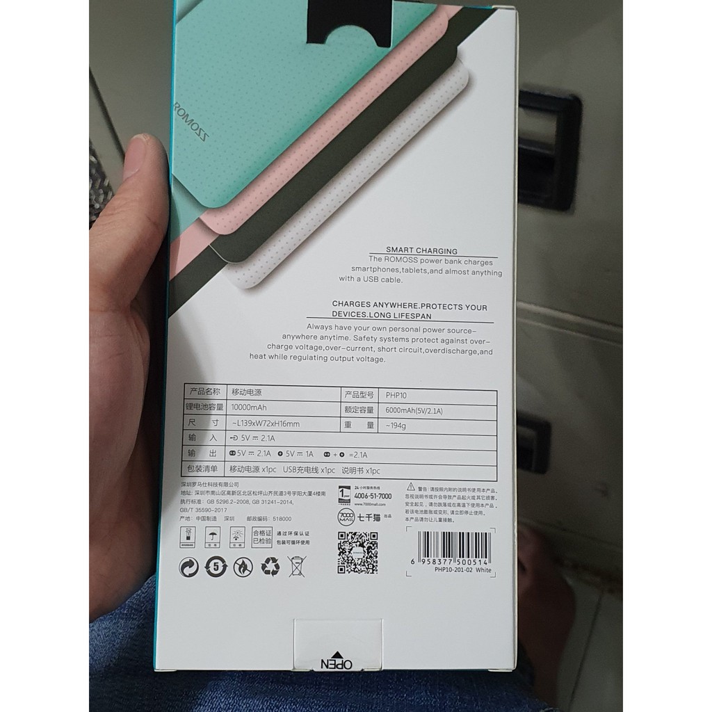 Điện Thoại & Phụ Kiện > Phụ kiện > Sạc dự phòng & Pin > Sạc dự phòng || Sạc dự phòng ROMOSS 10.000 maH - Tem Chính Hãng 100% - Giá Hạt Dẻ ( 1 ĐỔI 1 TRONG 3 NGÀY ) (CHUYÊN HÀNG ĐIỆN TỬ LOẠI 1)Còn hàng