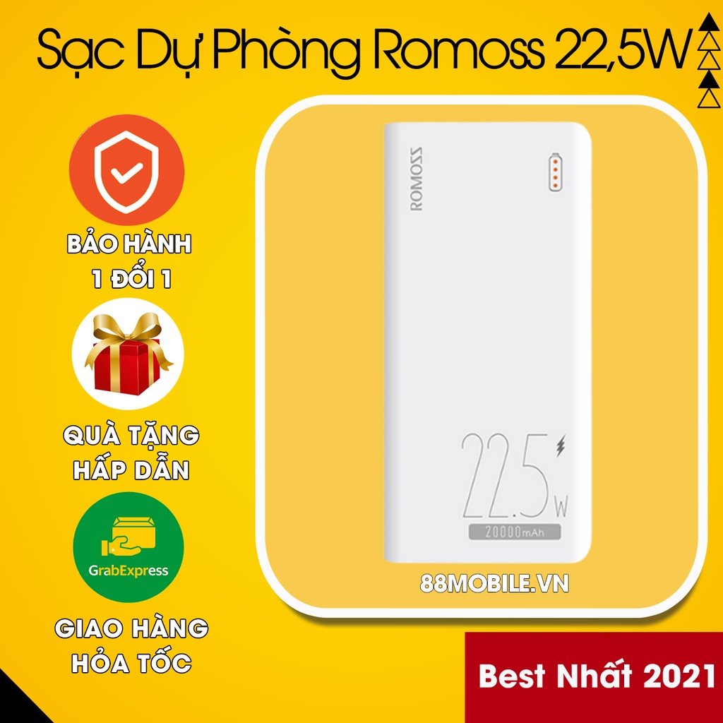 [Mã 253ELSALE hoàn 7% đơn 300K] Sạc Dự Phòng Romoss 20000W Sạc Nhanh Công Suất 22,5W Nhiều Cổng Sạc Cao Cấp 88Mobile