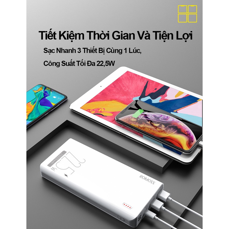 Sạc Dự Phòng Romoss 20000W Sạc Nhanh Công Suất 22,5W Nhiều Cổng Sạc Cao Cấp✅ TIẾT KIỆM THỜI GIAN