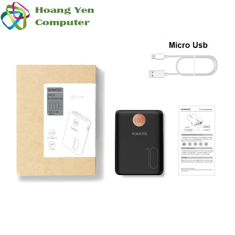 Sạc Dự Phòng Romoss SW10 MINI 10000mAh 2 USB, 2 Cổng Sạc Vào - Bh 1 Năm | Pin Dự Phòng Mini - Hoàng Yến Computer