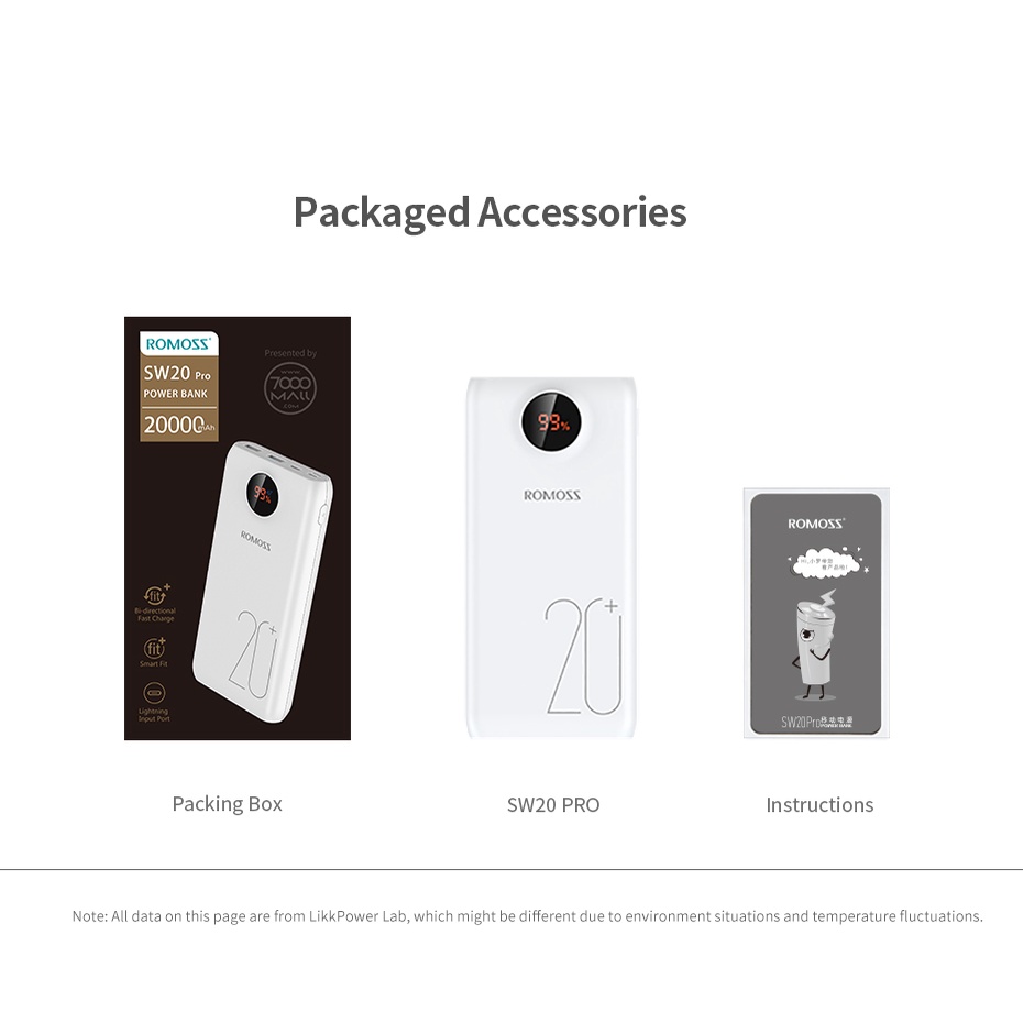 Sạc Dự Phòng Romoss SW20 Pro 20000mAh QC3.0 Và Sạc Nhanh 2 Chiều Type C - BH 1 NămBảo hành 1 năm bằng tem tại shop. 1 đổi 1 trong 2 tuần đầu nếu lỗi kĩ thuật và sản phẩm còn mới không trầy, xước (Quý khách vui lòng giữ lại hộp và phụ kiện). Hổ trợ phí ship 2 chiều trong 15 ngày đầu. Sản phẩm cần mở hộp để dán tem bảo hành.