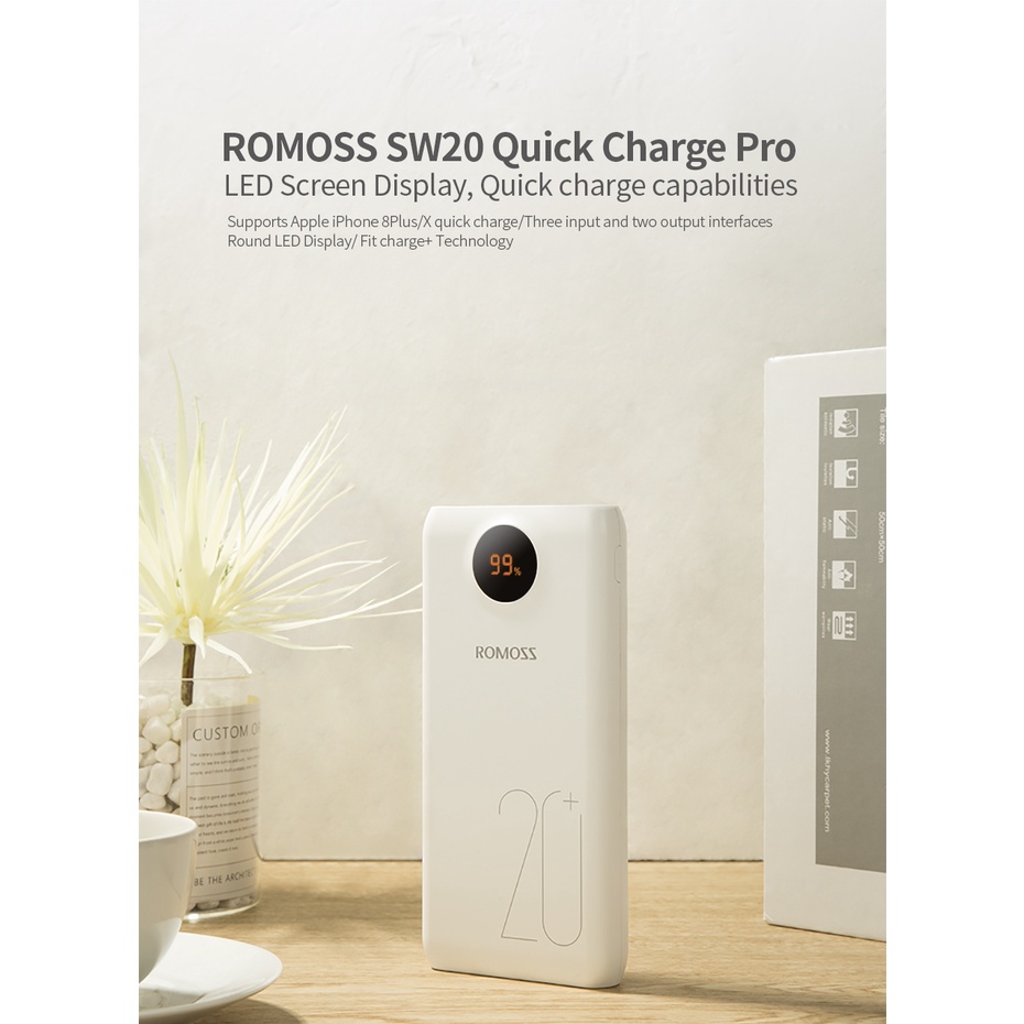 Sạc Dự Phòng Romoss SW20 Pro 20000mAh QC3.0 Và Sạc Nhanh 2 Chiều Type C - BH 1 Năm - HP TECH