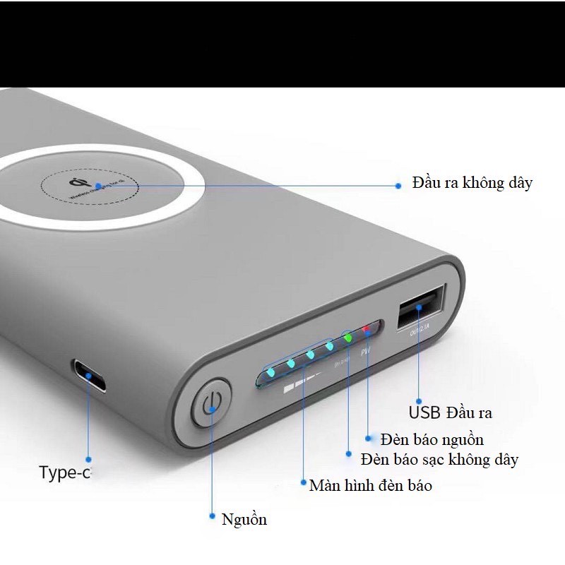 Điện Thoại & Phụ Kiện > Phụ kiện > Sạc dự phòng & Pin > Sạc dự phòng || [Sạc dự phòng] Sạc dự phòng hỗ trợ không dây, Dung lượng lớn 10000mAh kết hợp 1 cổng usb, tích hợp sạc nhanh - CocoShopCòn hàng