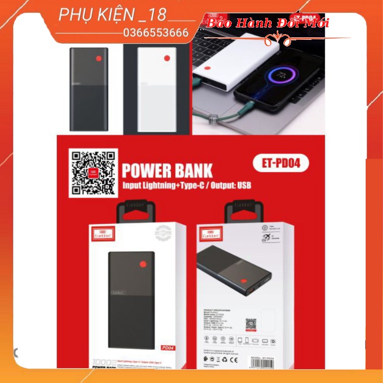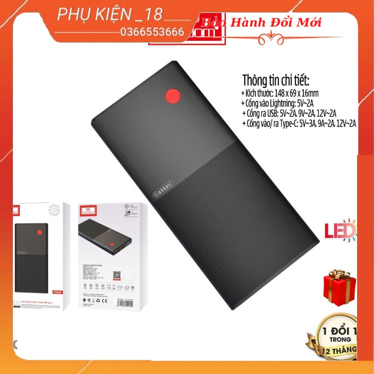 Điện Thoại & Phụ Kiện > Phụ kiện > Sạc dự phòng & Pin > Sạc dự phòng || SẠC DỰ PHÒNG SẠC NHANH 10.000 MAH EARLDOM PD-04Còn hàng