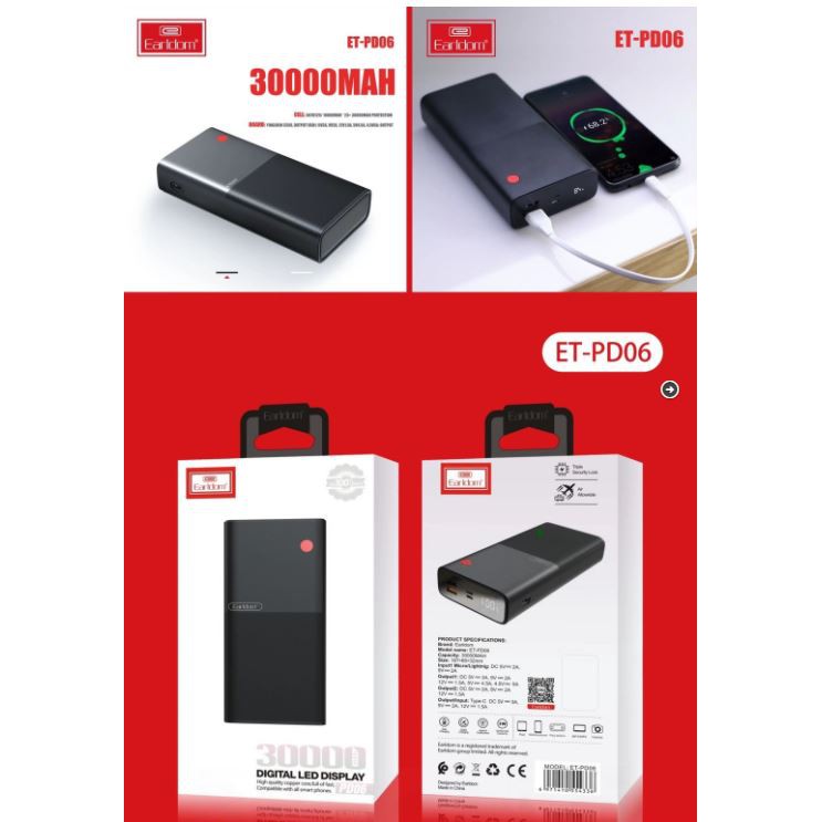 GIỚI THIỆU SẢN PHẨM:Sạc Dự Phòng Earldom 30.000 mAh PD – 06