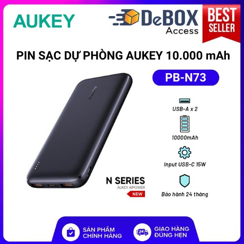 SẠC DỰ PHÒNG 10.000 MAH AUKEY PB-N73Pin Sạc Mỏng Nhất, 1 Cổng Sạc Tốc độ cao USB-C 15W + 2 Cổng USB-A