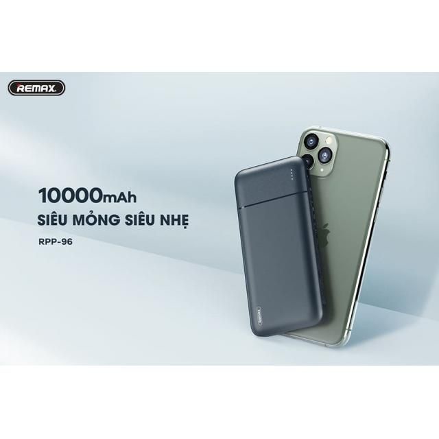 Sạc dự phòng siêu mỏng 10000mAh Remax RPP-96 Lõi Li-Polymer, 2 cổng sạc Input/Output