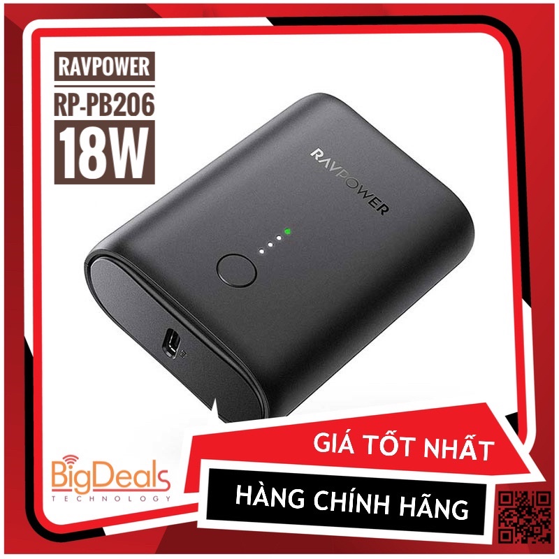 Sạc dự phòng siêu nhỏ RAVPOWER RP-PB206 10000mAh 18W | BigDeals VN✅ Sản phẩm mới chính hãng 100%