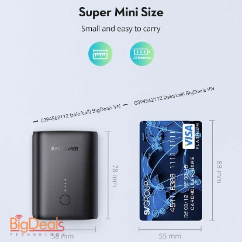 Điện Thoại & Phụ Kiện > Phụ kiện > Sạc dự phòng & Pin > Sạc dự phòng || Sạc dự phòng siêu nhỏ RAVPOWER RP-PB206 10000mAh 18W | BigDeals VNCòn hàng