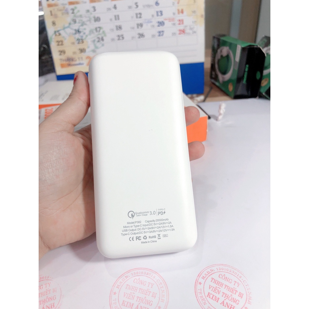 SYC P382 20.000mah PD18w là dòng pin sạc dự phòng 20 000mAh với thiết kế 1 cổng sạc nhanh QC 3.0 USB + 1 cổng Micro +1 cổng sạc nhanh PD cho khả năng sạc nhiều thiết bị cùng lúc với nguồn ra 5V.