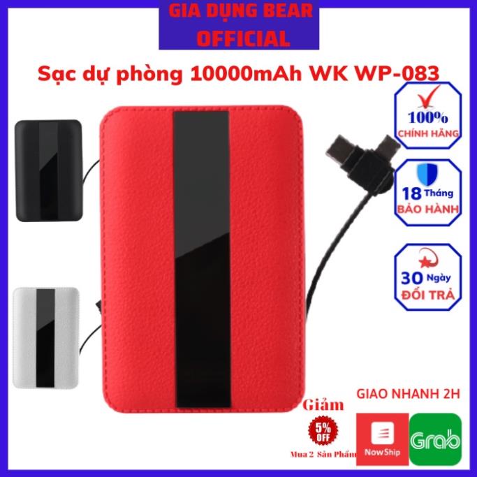 Sạc dự phòng tích hợp cáp sạc Remax WK WP-083 10000mAh - Hàng chính hãng