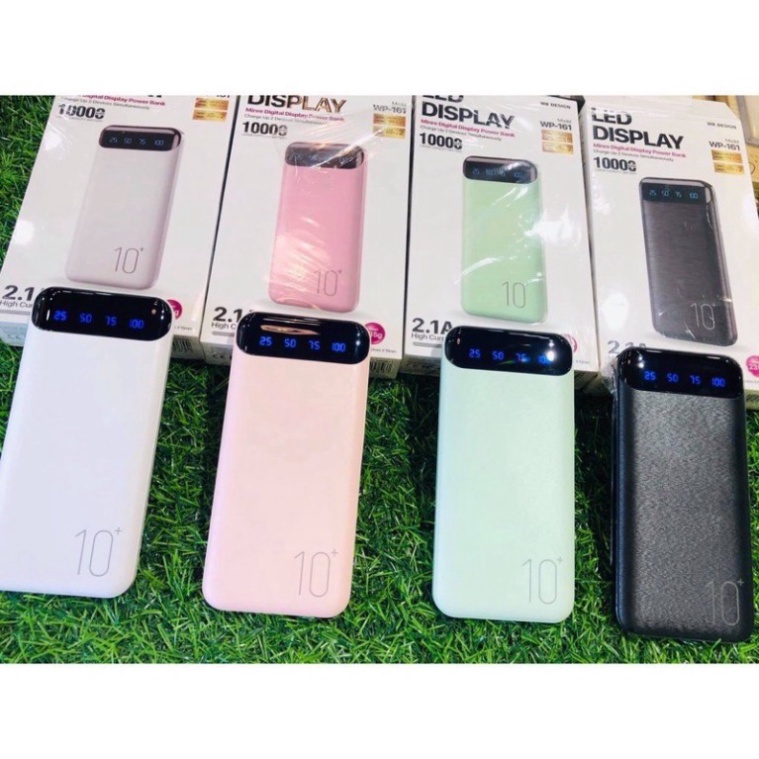 - Sạc dự phòng 10.000mAh nhỏ gọn thời trang WP-161 sạc 2 thiết bị cùng lúc.