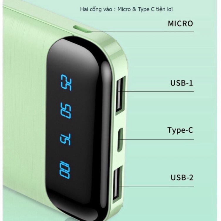 + Bên cạnh đó còn có 2 cổng Input DC5V/2.0A giúp người dùng dễ dàng lựa chọn cổng vào phù hợp với chiếc cáp đã có sẵn. Đây là một thiết kế cực tiện lợi mà người dùng thấy được trên chiếc sạc dự phòng này.