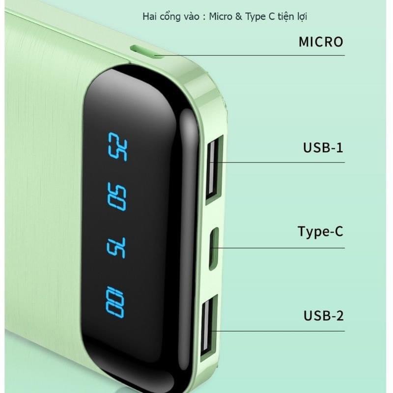 - Sạc dự phòng 10.000mAh nhỏ gọn thời trang WP-161 sạc 2 thiết bị cùng lúc.