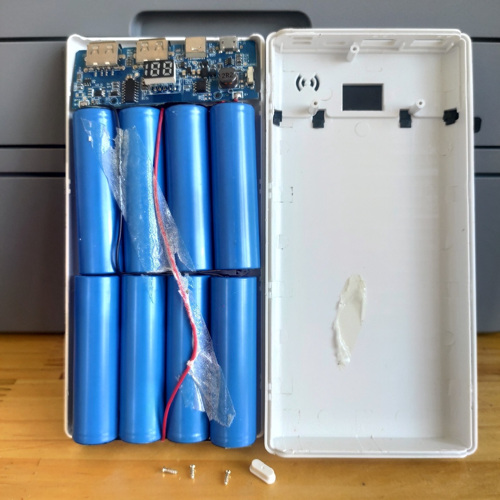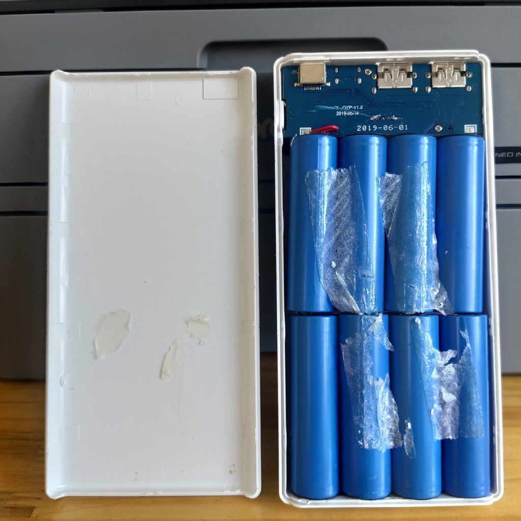 Mỗi box nặng tầm 400g. Nội thất gồm 8 viên 18650 chứ không phải lipo anh em có thể yên tâm không sợ chửa. vỏ dễ dàng tháo ra thay pin or mạch, lấy linh kiện chỉ cần 1 chiếc tua vít dẹt là xong