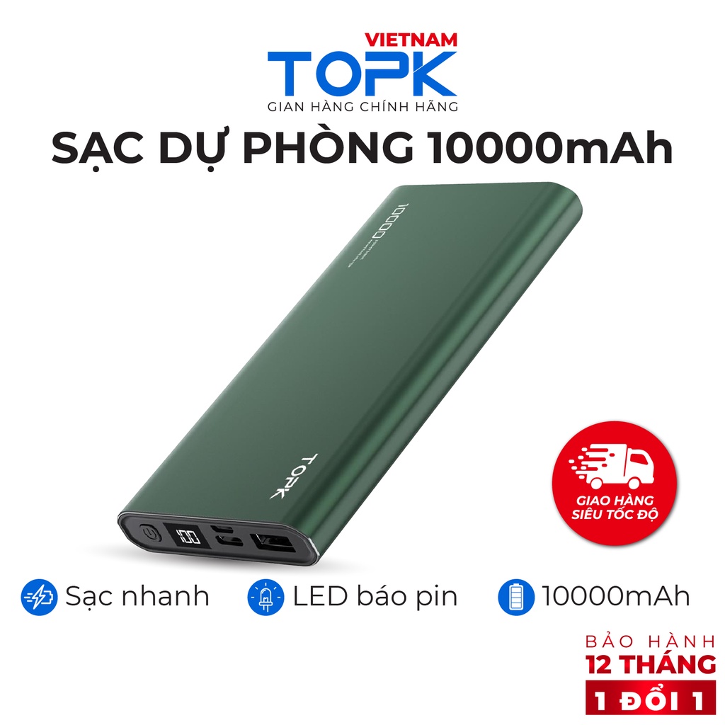 Sạc dự phòng 10000mAh TOPK I1006P - Sạc PD 18W - Màn hình LED - Hàng phân phối chính hãng - Bảo hành 12 tháng 1 đổi 1THỜI GIAN GIAO HÀNG SIÊU TỐC ĐỘ