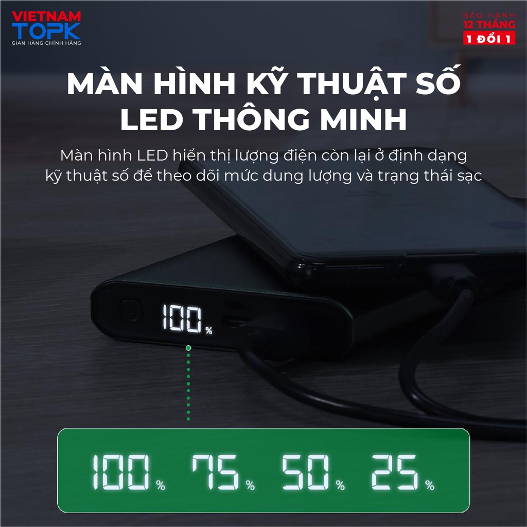 Sạc dự phòng TOPK I1006P 10000mAh - Sạc PD 18W - Màn hình LED - Hàng phân phối chính hãng - Bảo hành 12 tháng 1 đổi 1
