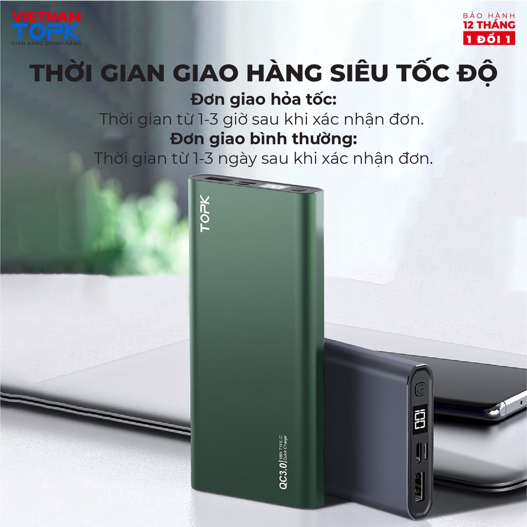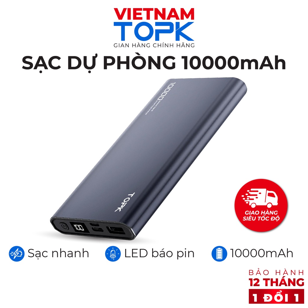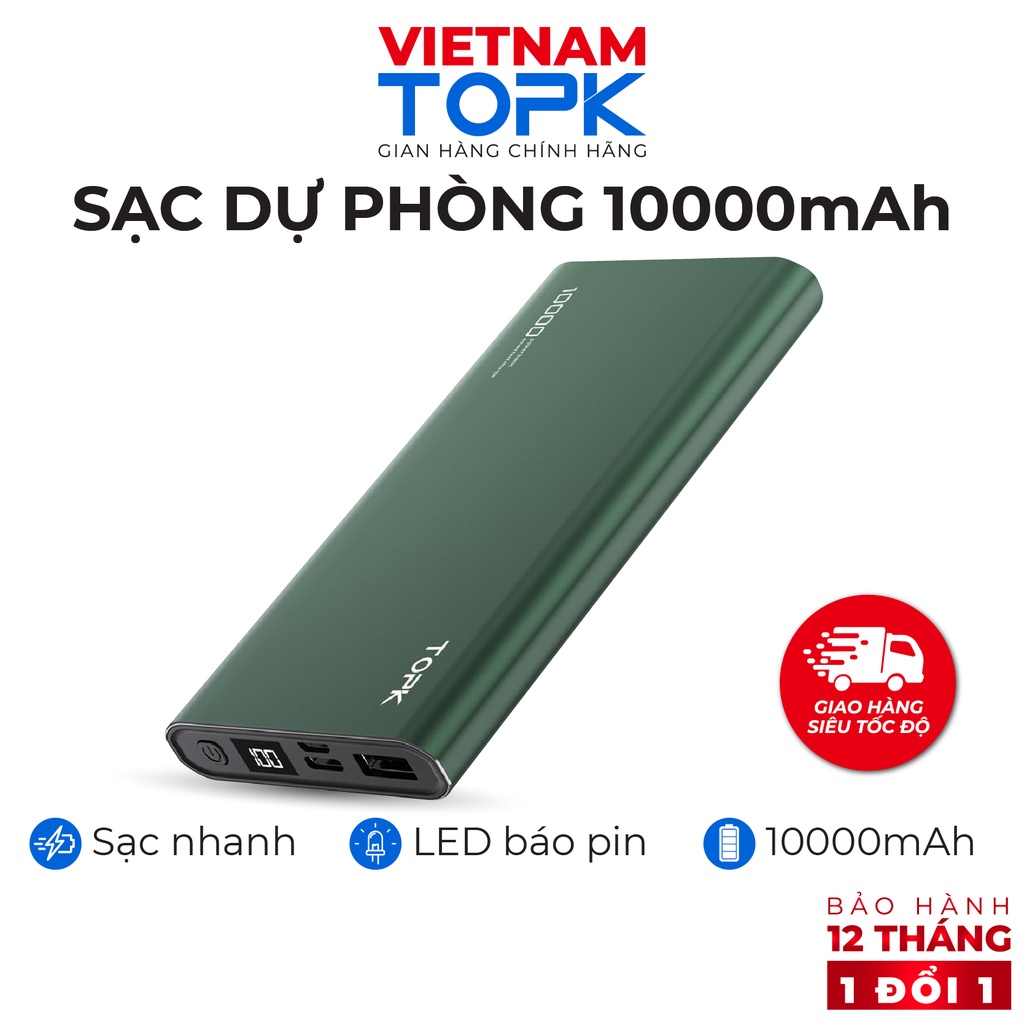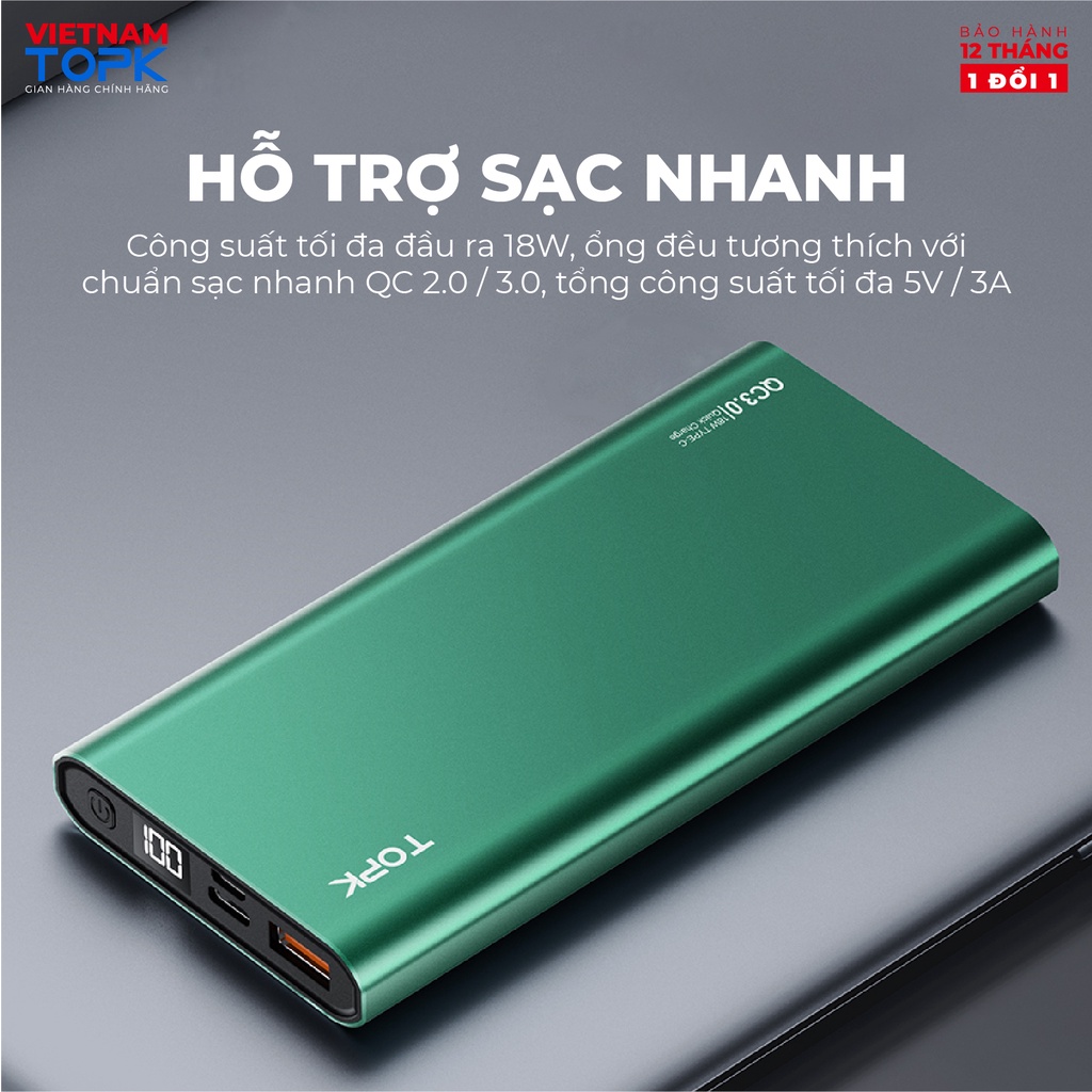 Sạc dự phòng 10000mAh TOPK I1006P - Sạc PD 18W - Màn hình LED - Hàng phân phối chính hãng - Bảo hành 12 tháng 1 đổi 1THỜI GIAN GIAO HÀNG SIÊU TỐC ĐỘ