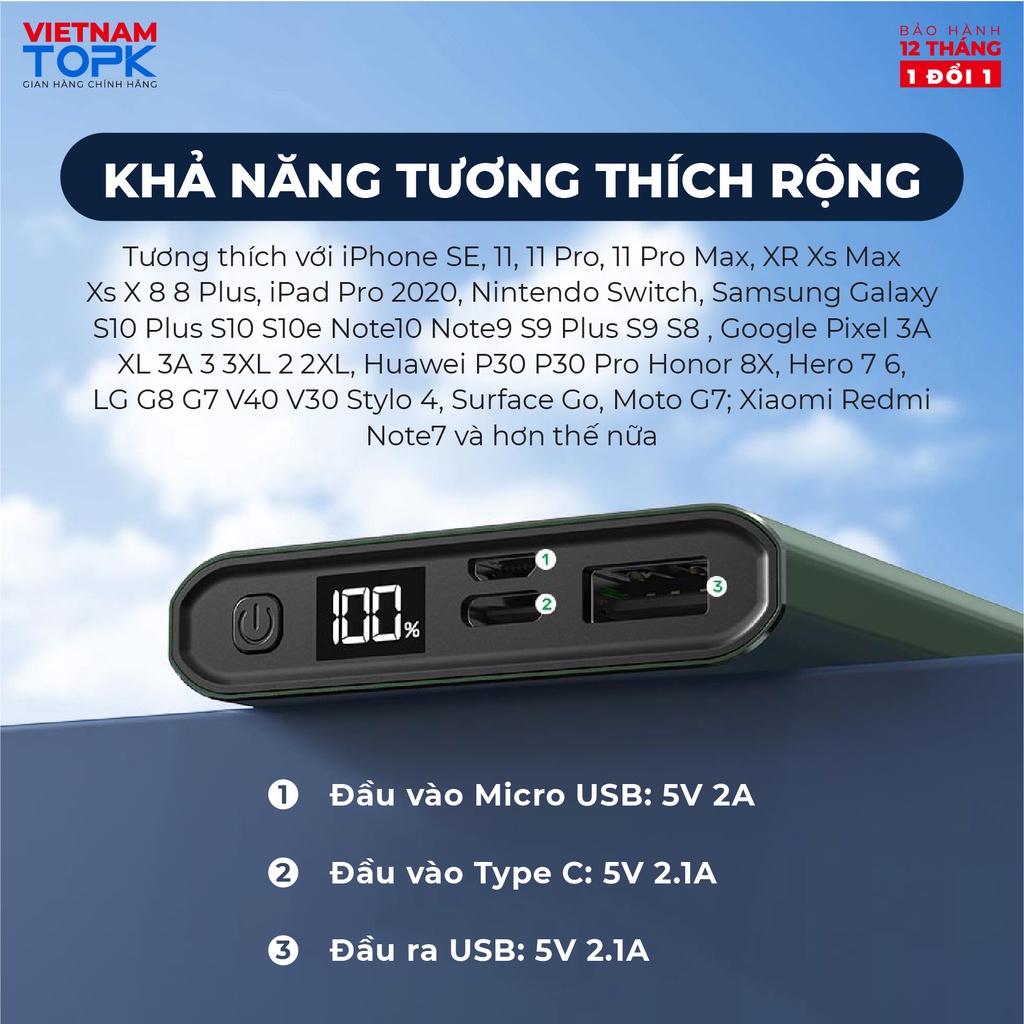 Thương hiệu: TOPK | Xem thêm các sản phẩm Pin sạc dự phòng di động của TOPKMô tả ngắn