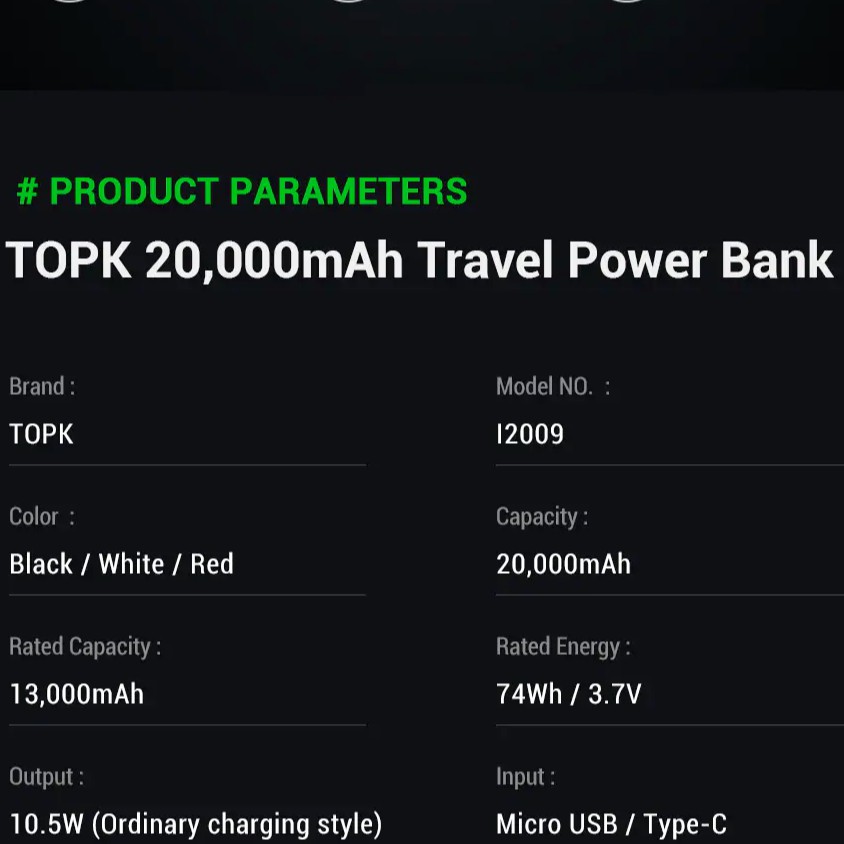 Thương hiệu: TOPK | Xem thêm các sản phẩm Pin sạc dự phòng di động của TOPKMô tả ngắn