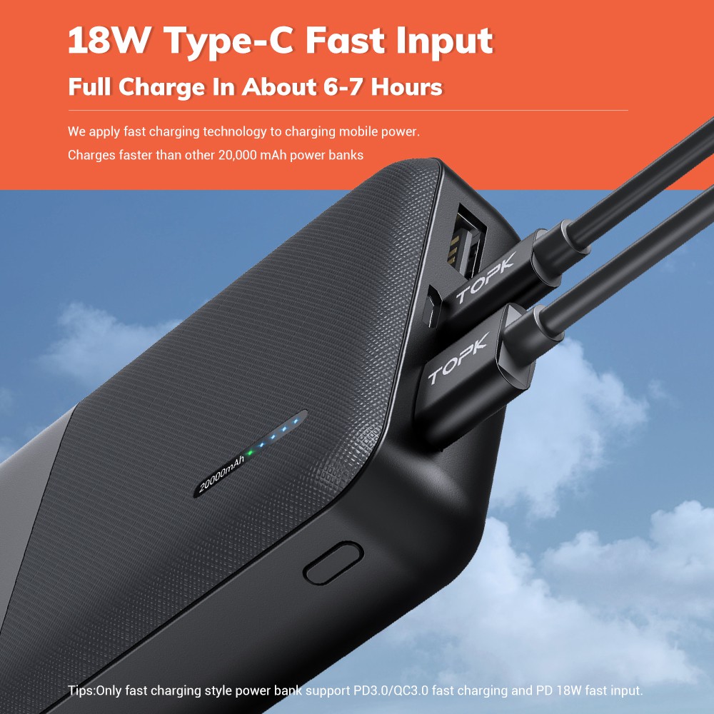 ☀ 1 x Sạc dự phòng hỗ trợ sạc nhanh TOPK 20000mAh