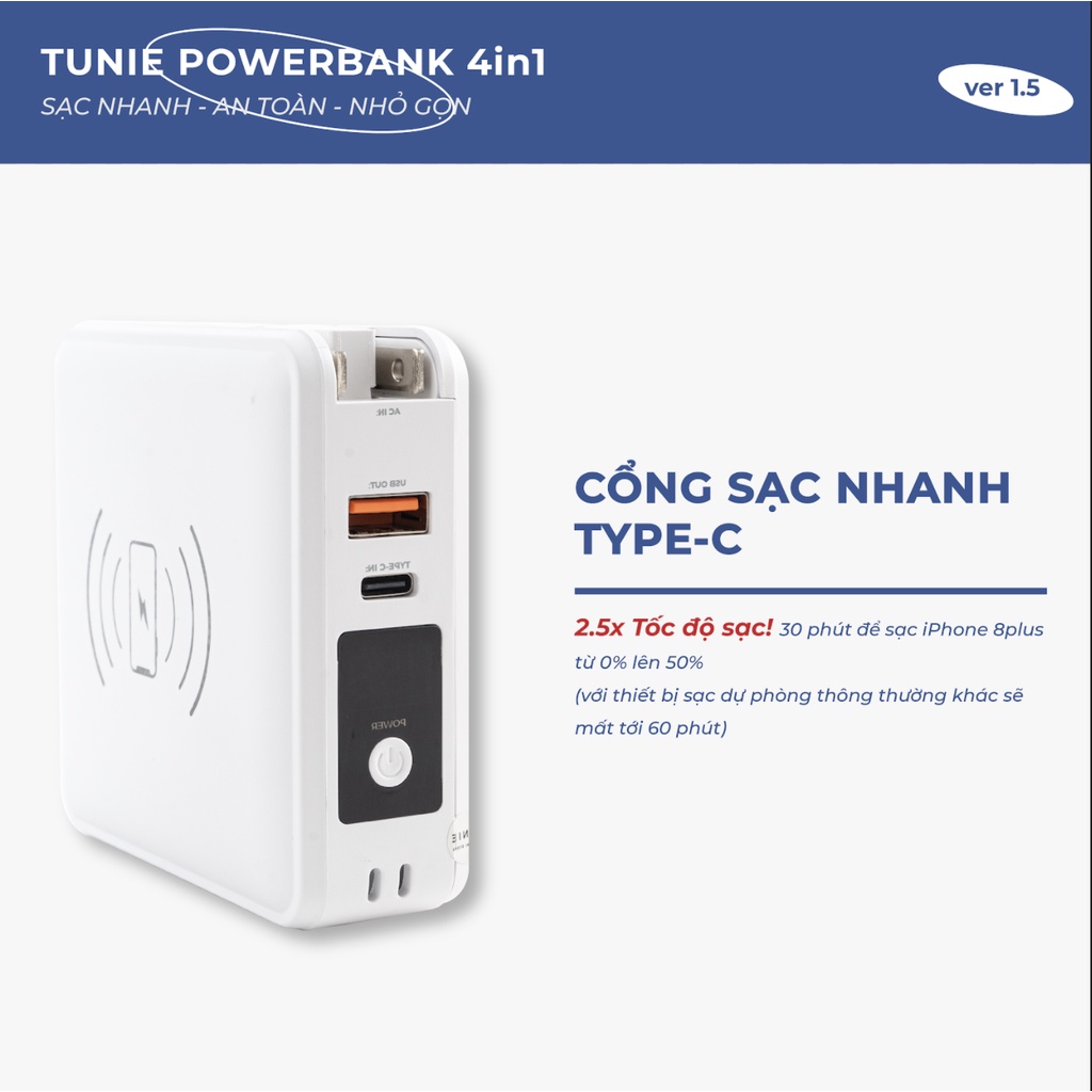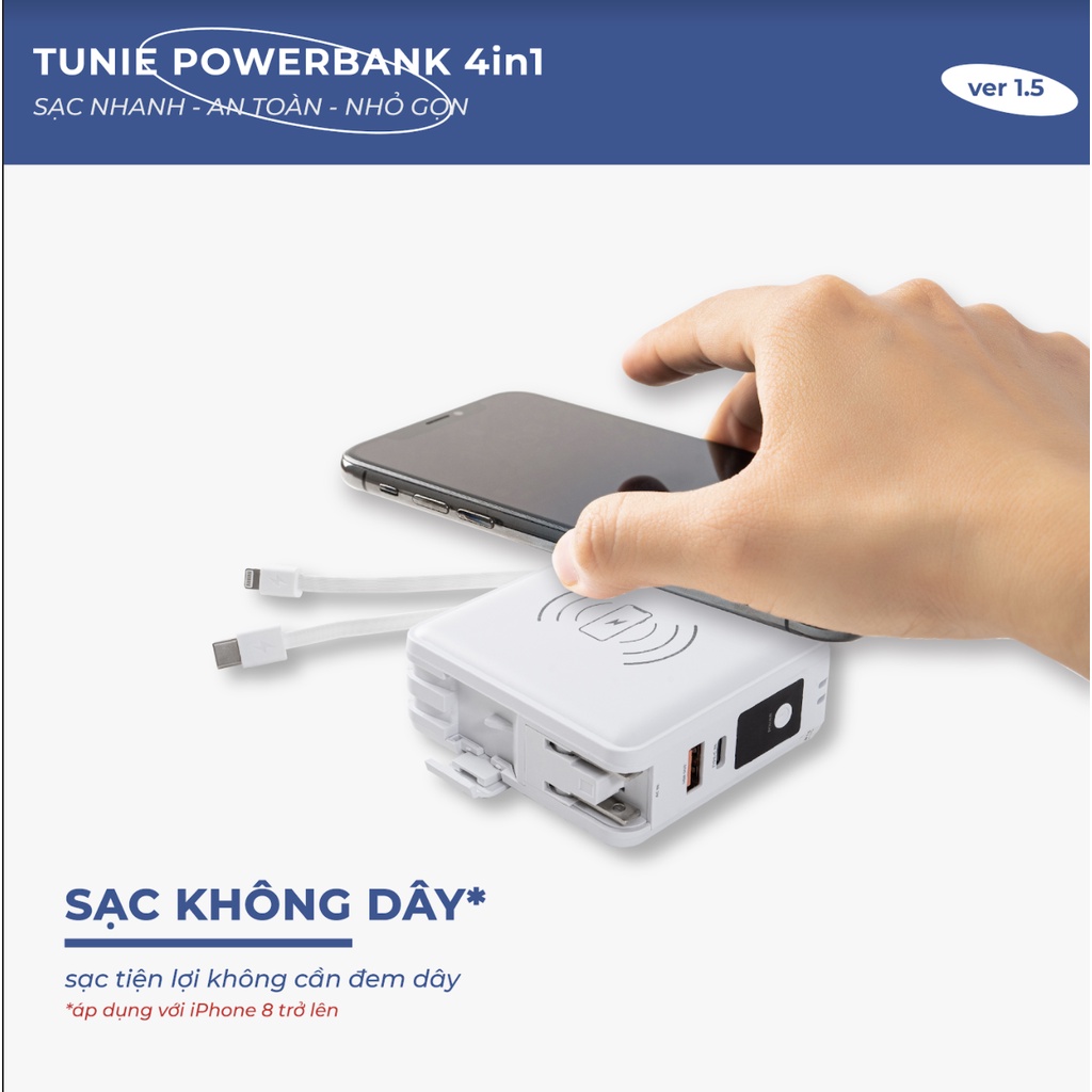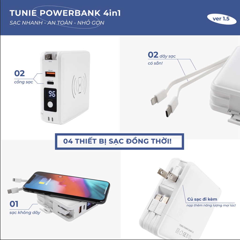 TUNIE POWERBANK 4in1 tự hào là dòng SẠC DỰ PHÒNG ưu việt nhất dành cho bạn, được đặc biệt tích hợp rất nhiều tiện ích cùng CÔNG NGHỆ SẠC NHANH an toàn và tối ưu nhất để sạc được tối đa 4 thiết bị cùng lúc chỉ trong cùng một thiết bị sạc!ƯU ĐIỂM NỔI BẬT:
