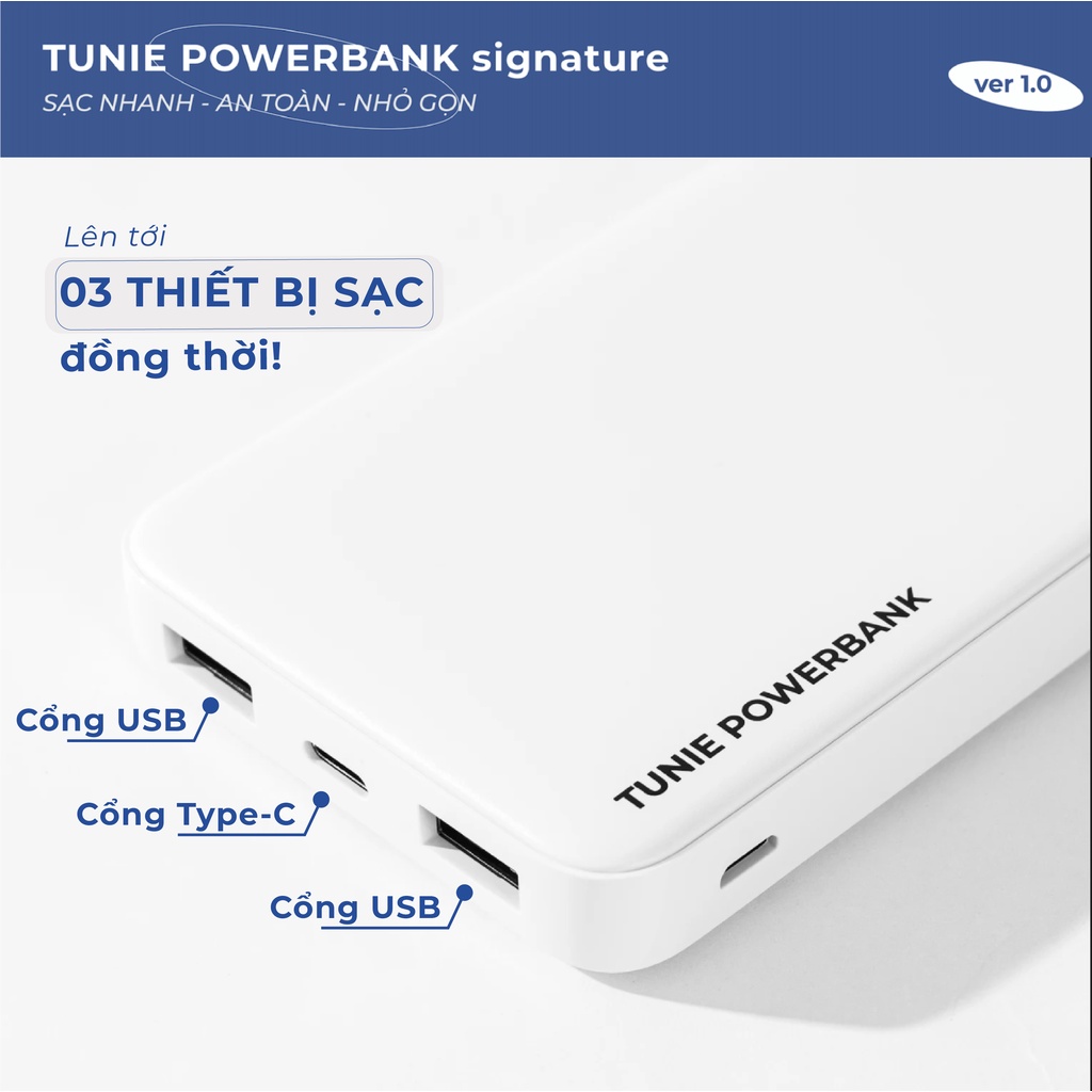 Sạc Dự Phòng Tunie Signature 10000mAh20000mAh Hỗ Trợ Sạc Nhanh, 3 Cổng