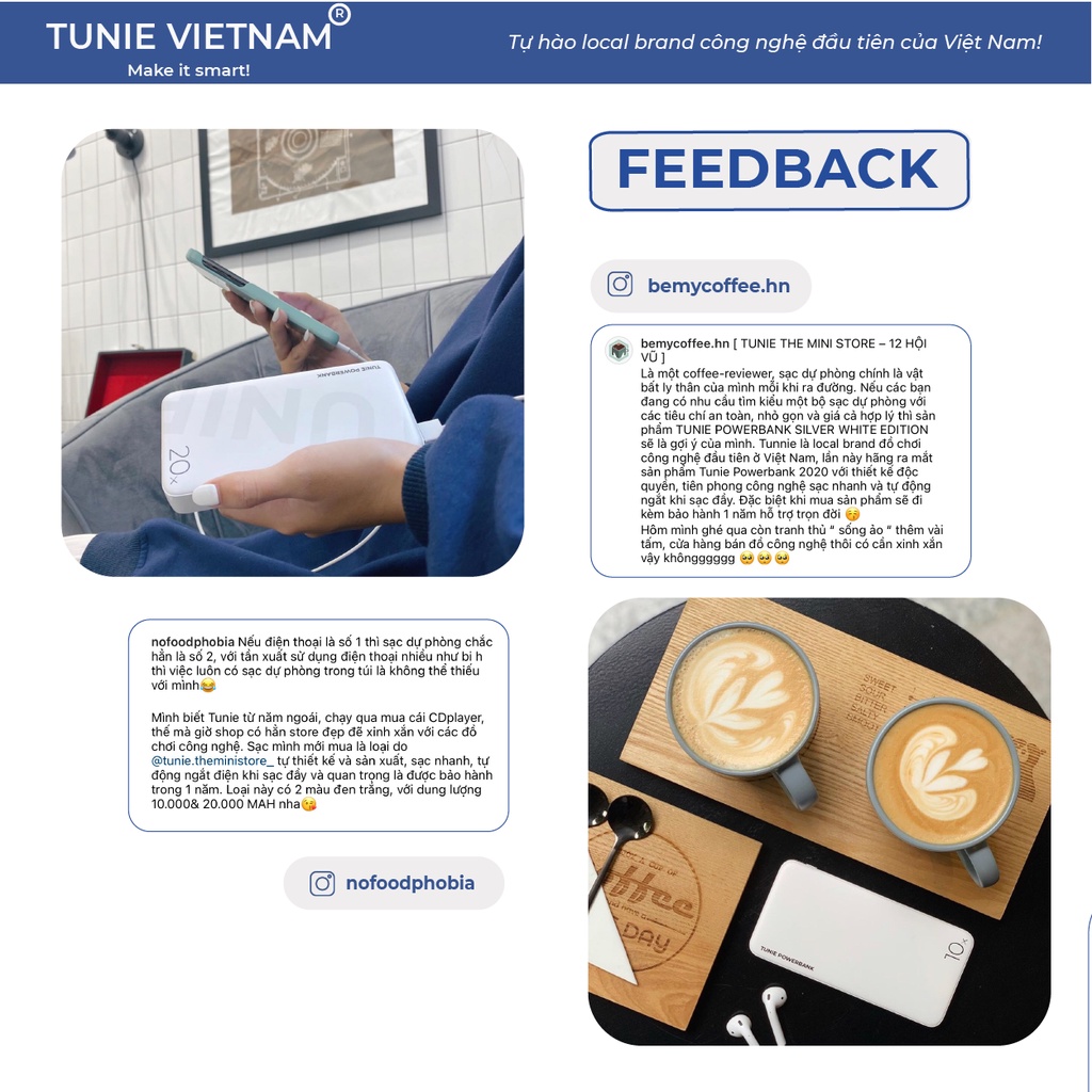 TUNIE POWERBANK bản signature này của Tunie là sản phẩm thiết kế bởi TUNIE VIETNAM, đặc biệt dành cho sự tiện lợi của bạn với công nghệ sạc nhanh, đảm bảo an toàn mà vẫn đáp ứng được tiêu chí nhỏ gọn, dễ mang theo người.ƯU ĐIỂM NỔI BẬT: